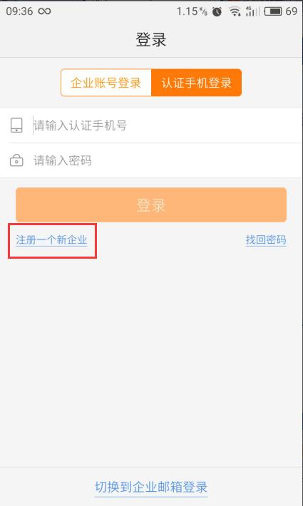 1.打开手机客户端,点击“企业注册”按钮,注册企业账号。